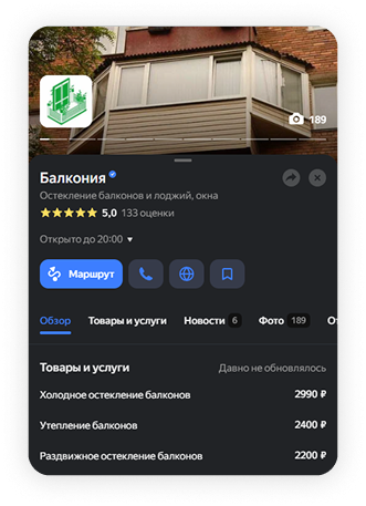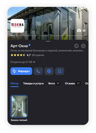 Поднимем компанию в выдаче Яндекс Карт за 14 дней и дадим прирост обращений. Полная оптимизация карточки: услуги, описание, фото, отзывы + приоритетное размещение.