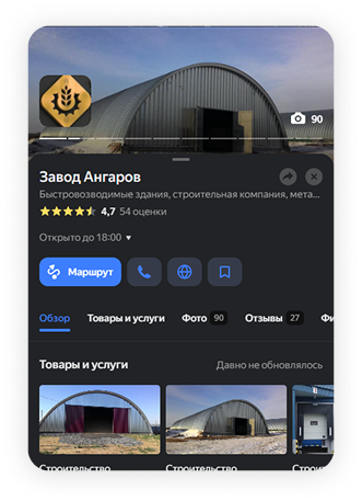 Еженедельно/ежемесячно показываем динамику: показы, переходы, звонки, построенные маршруты, заявки и стоимость обращения. Дальше ведём карточку и рекламу: обновляем контент, усиливаем отзывы, дорабатываем офферы и масштабируем то, что работает.