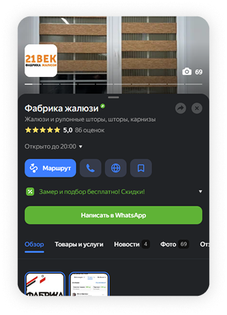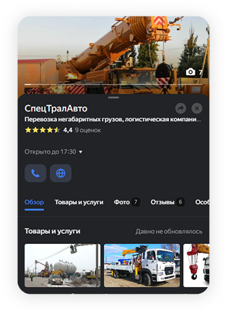Заполнение профиля компании: полное заполнение всех разделов профиля: категория, график работы.соцсети, фото услуги, интерьер, экстерьер, видео), товары/услуги